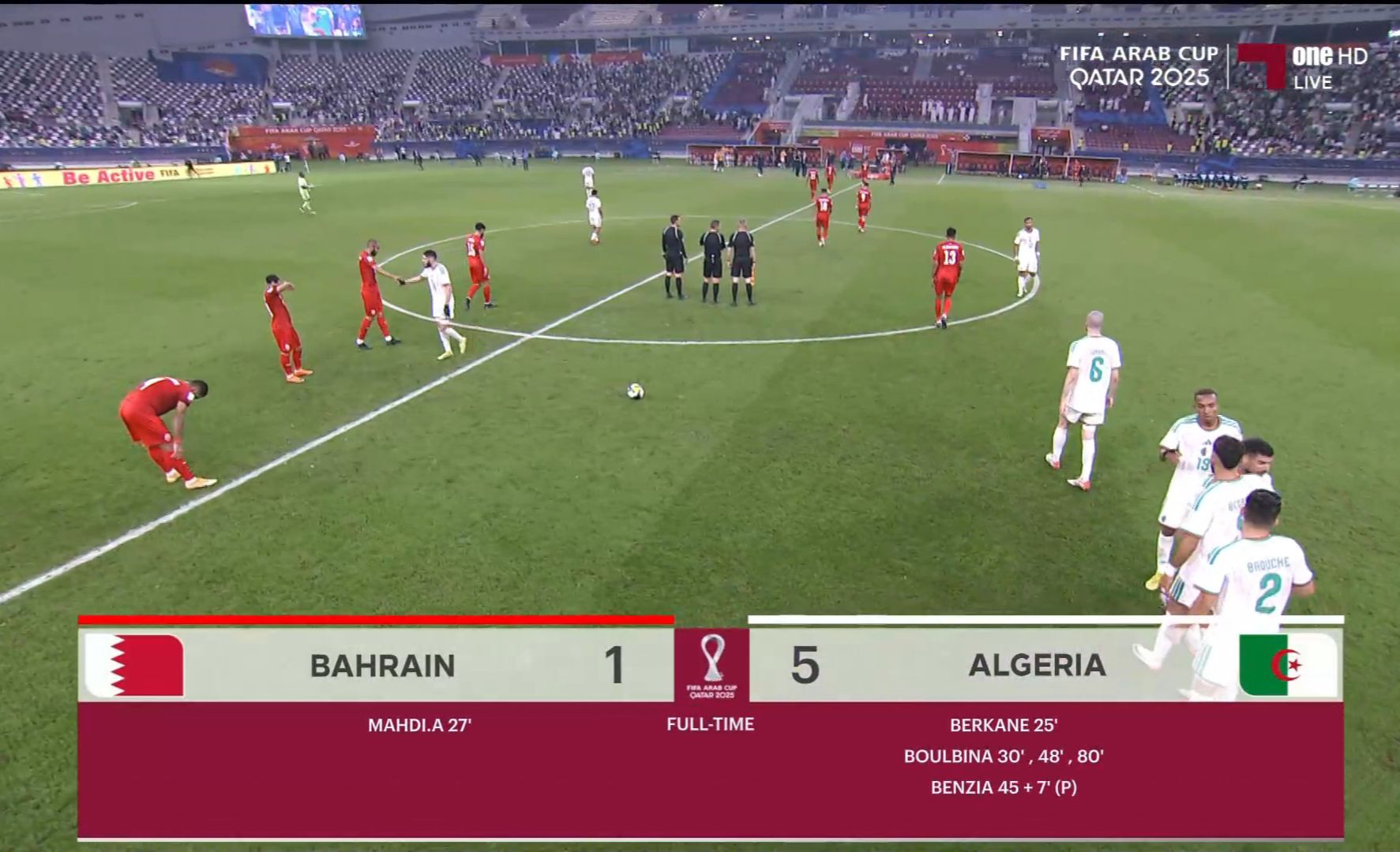 فاز منتخب الجزائر علي نظيره البحريني، بخسمة أهداف مقابل هدف، في المباراة التي أقيمت بينهما اليوم السبت، على ملعب خليفة الدولي، ضمن منافسات الجولة الثانية من دور المجموعات ببطولة كأس العرب 2025.